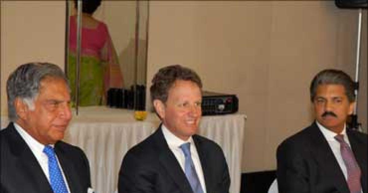 Image: Ratan Tata, Timothy Geithner and Anand Mahindra in Mumbai