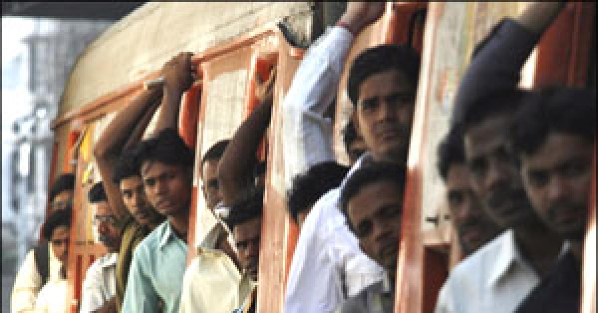 Image: Commuters travel in a suburban train in Mumbai. Photograph: Arko Datta/Reuters